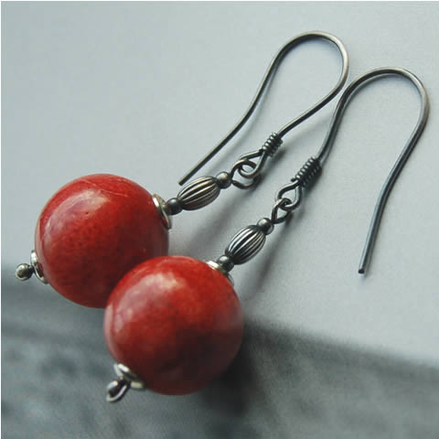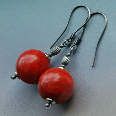 KoraloweKoraloweKoraloweKolczyki wykonane z 14mm kul Koralowca, srebrnych owali, kulek i talerzyków oraz srebrnych bigli. Całość oksydowana. Kolczyki mają długość ok. 4cm.