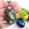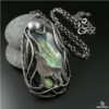 Owalny Labradoryt oprawiony jest w srebro pr.999 i 925 pracochłonną techniką wire-wrapping. Srebro zaoksydowane i wypolerowane.